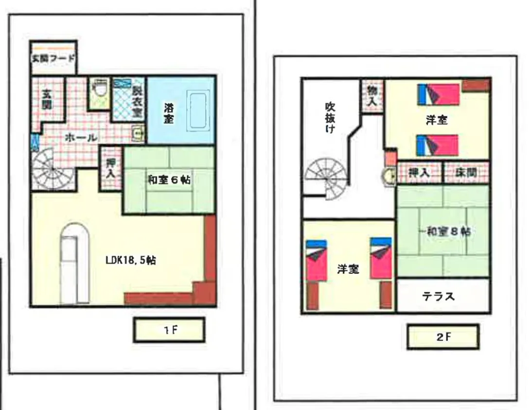 • 3 bedrooms, 8 beds (4 sets of bunk beds on each bedroom) plus 2 tatami rooms, 1 toilet (with the option to add 2nd toilet upstairs), with a separate changing room and Onsen bathroom.
